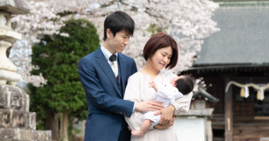 お宮参りを桜が祝福してくれました
