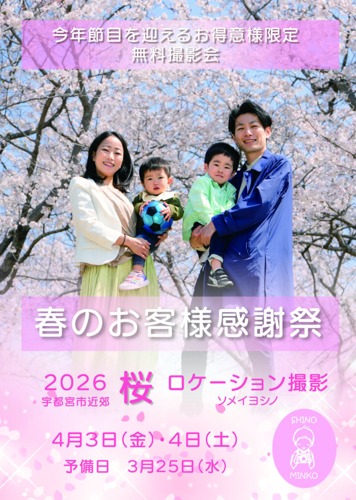 桜ロケーション撮影会 (宇都宮市近郊)のお知らせ